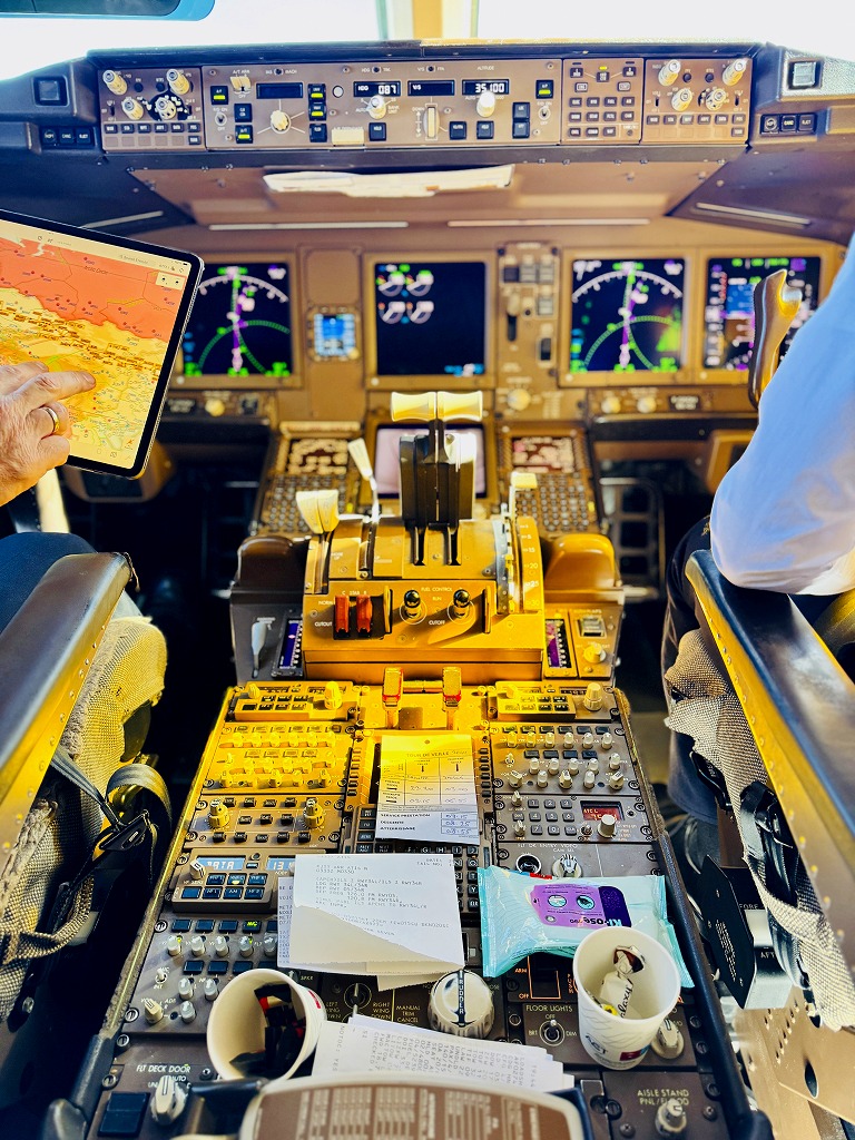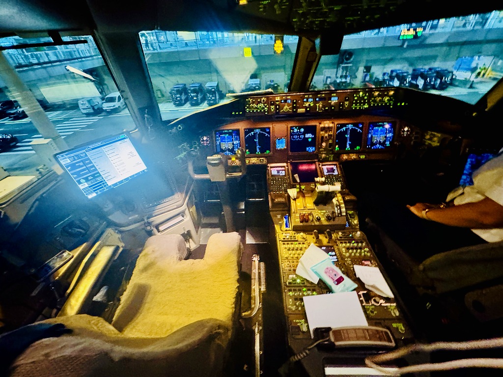 これまでファーストクラスやビジネスクラスには過去に何度も搭乗しています(全てマイルです)が、コックピットの中を見たことは一度もありませんでした!