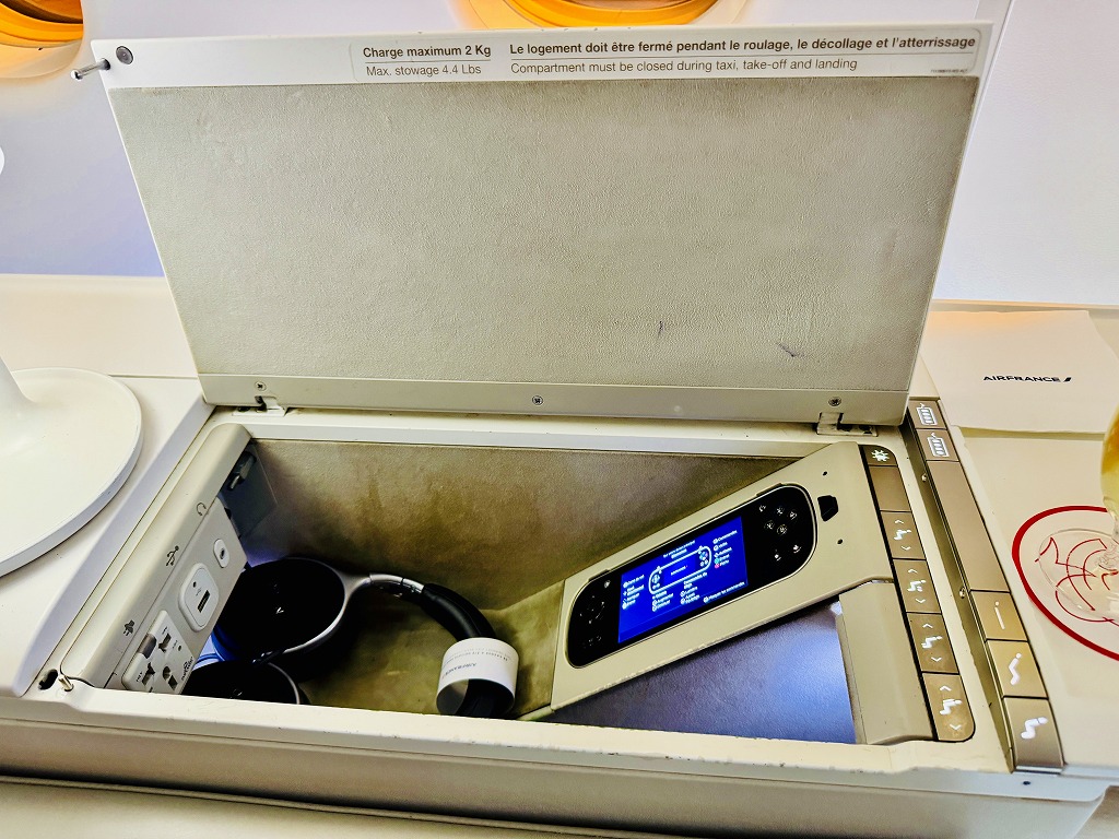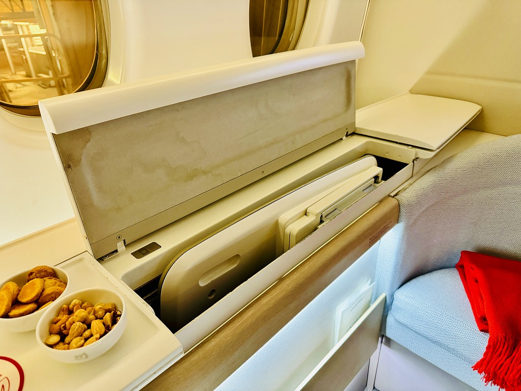 こちらは座席左側にある収納!モニターやヘッドフォンがありました。