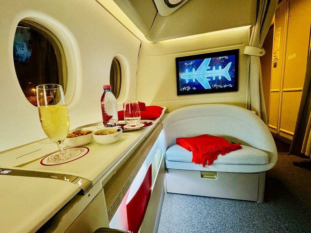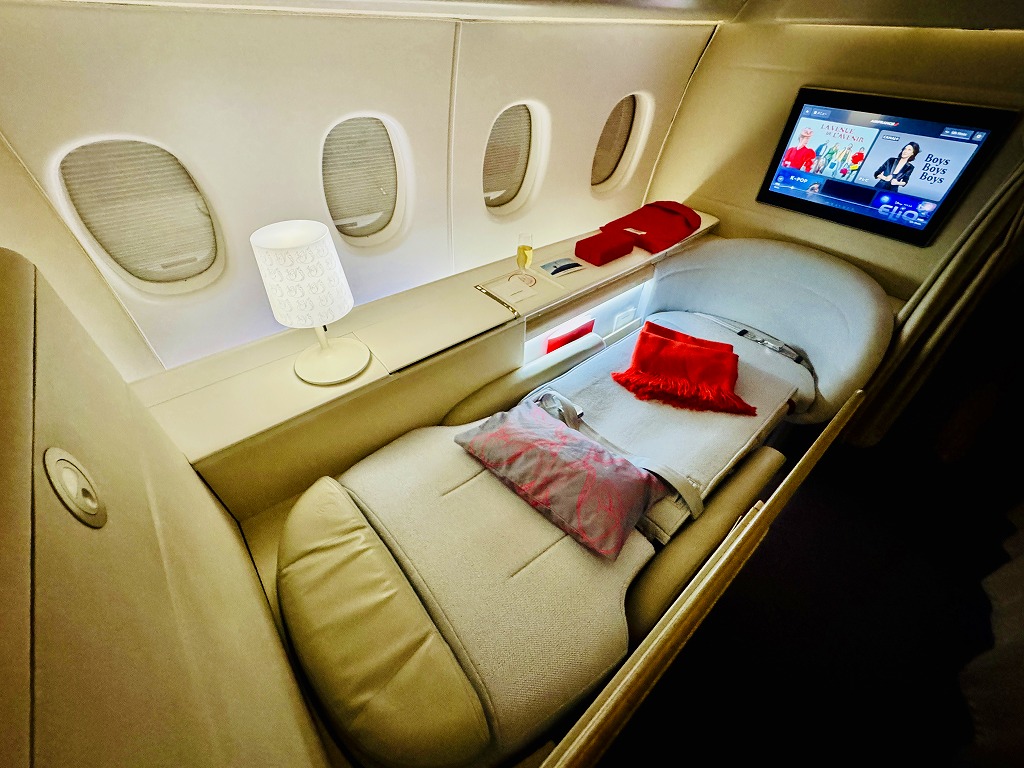 超凄い!!【エミレーツ 新型ファーストクラス】B777 ゲームチェンジャー搭乗記!機内食、座席、アメニティ、飲み物、JALマイルで搭乗!