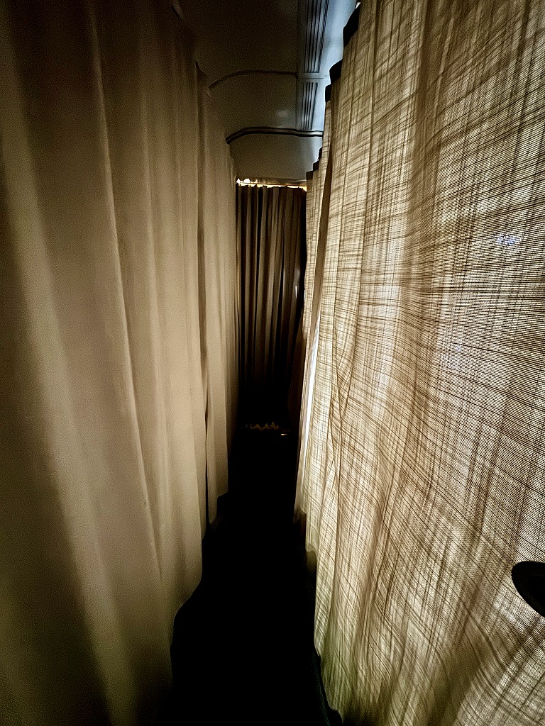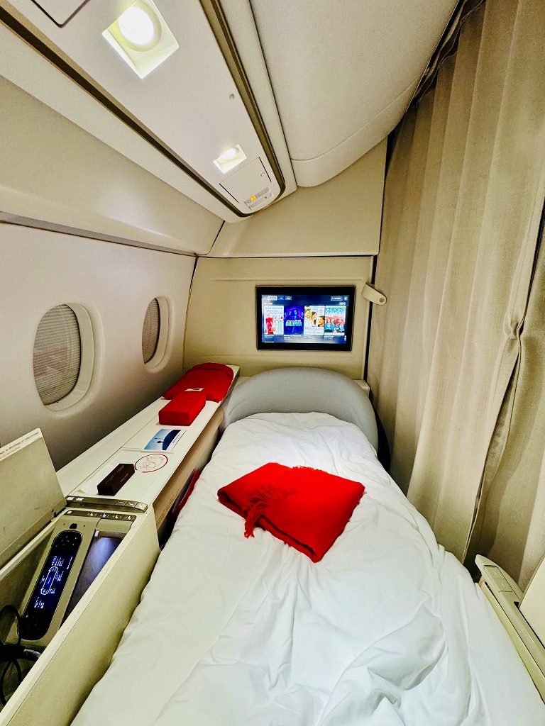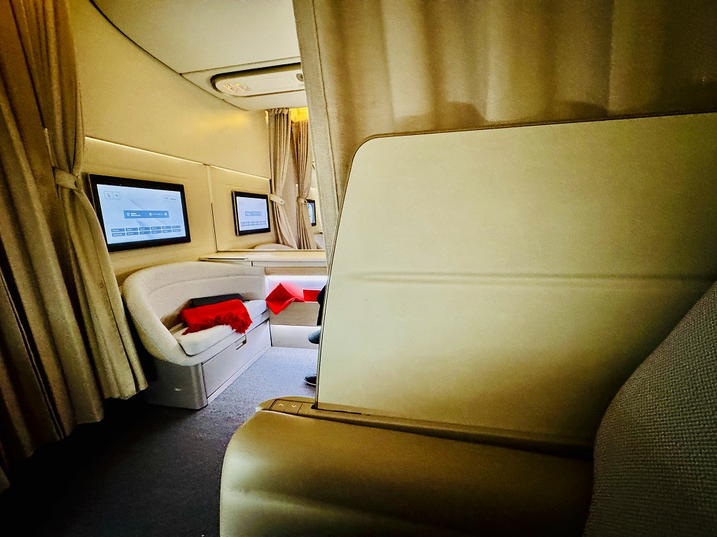 こちらが今回の私の1Aの座席です!!細長い座席で、重厚なカーテンで仕切ることが出来ます!