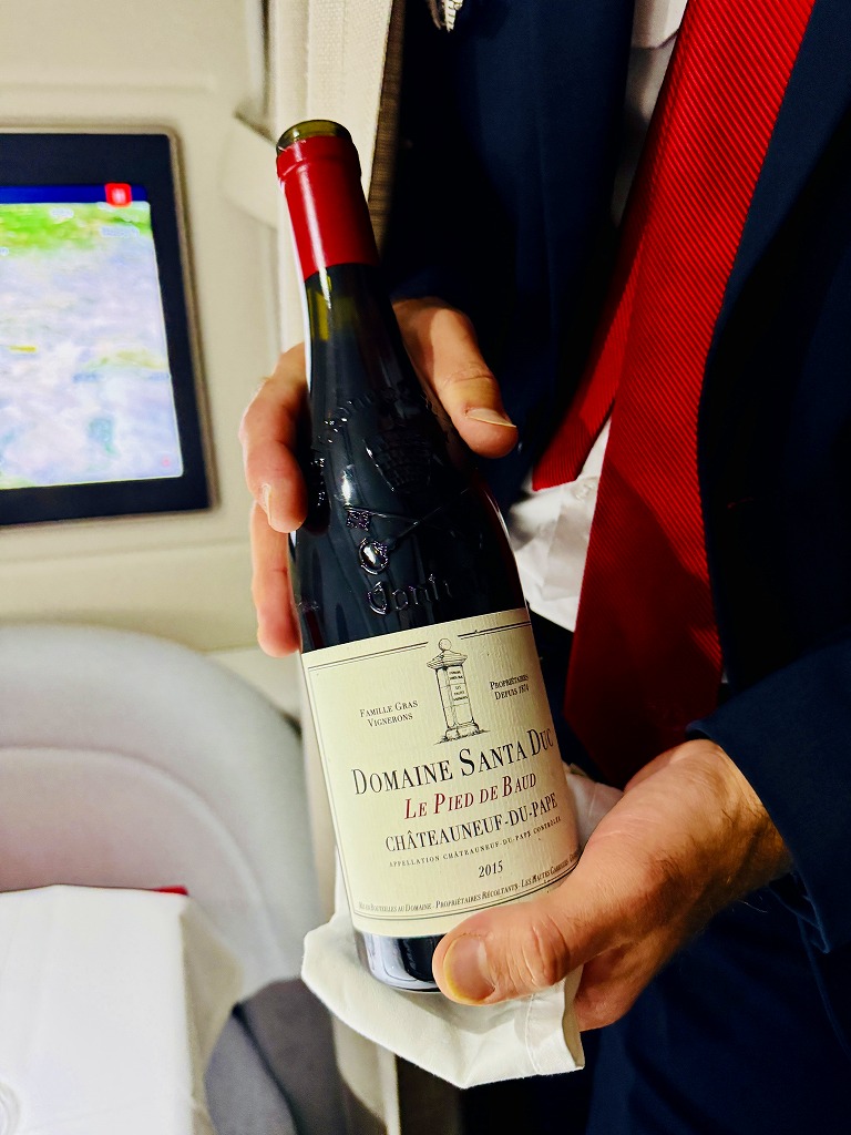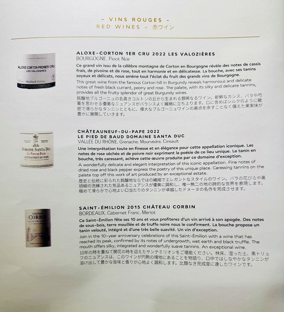 さらに、日本人のフライトアテンダントの方が、わざわざビジネスクラスから来てくださり、それぞれのワインについて丁寧に解説をしながら、楽しそうに一緒に選んでくださいました。