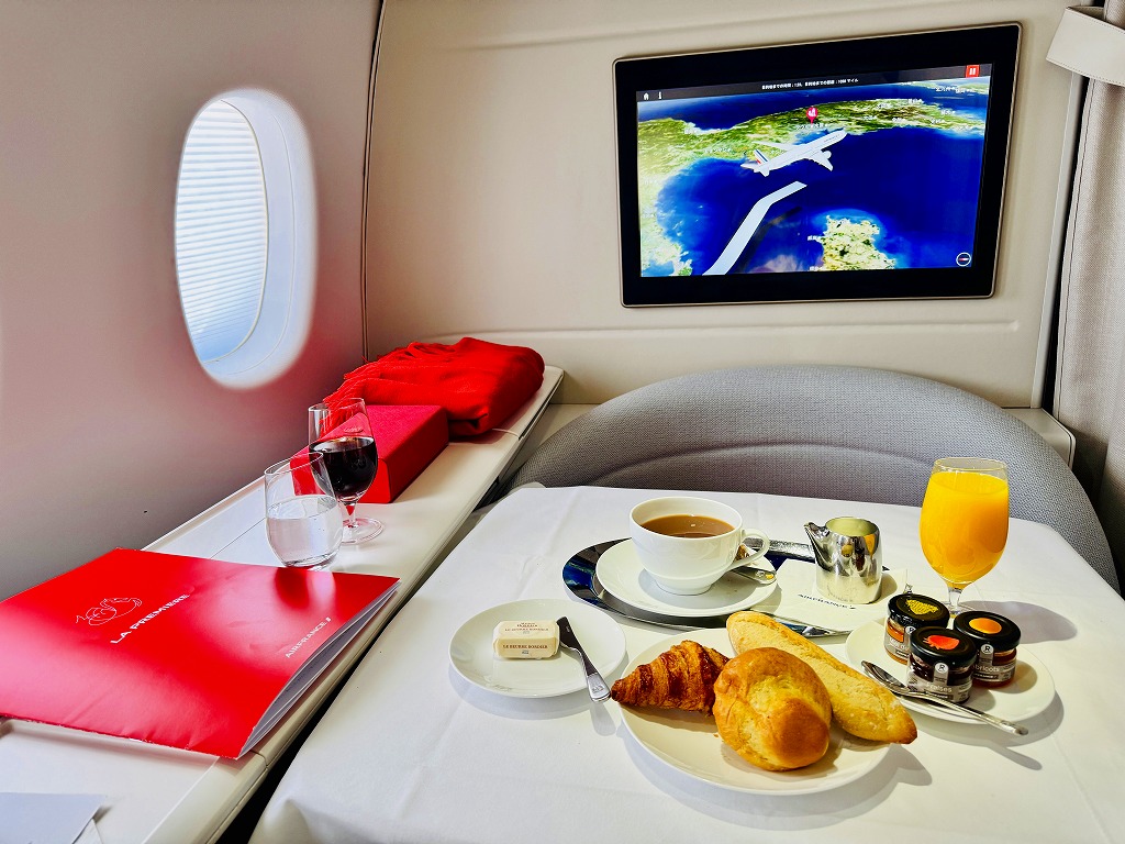実は私も当初は、新型ラプルミエールであるシャルルドゴール空港ニューヨークまでの特典航空券を持っていましたが、残念ながら機材変更があり旧型になってしまったので、それならばわざわざニューヨークへ行く必要がないので、羽田路線へと変更しました。ラプルミエールが一番評価されるのは、フランスならではの美味しい料理と素晴らしいサービスだと思うので、今回の感動をそこまで超えることはないと思うのですが、いつか新型にも搭乗してみたいと思います!
