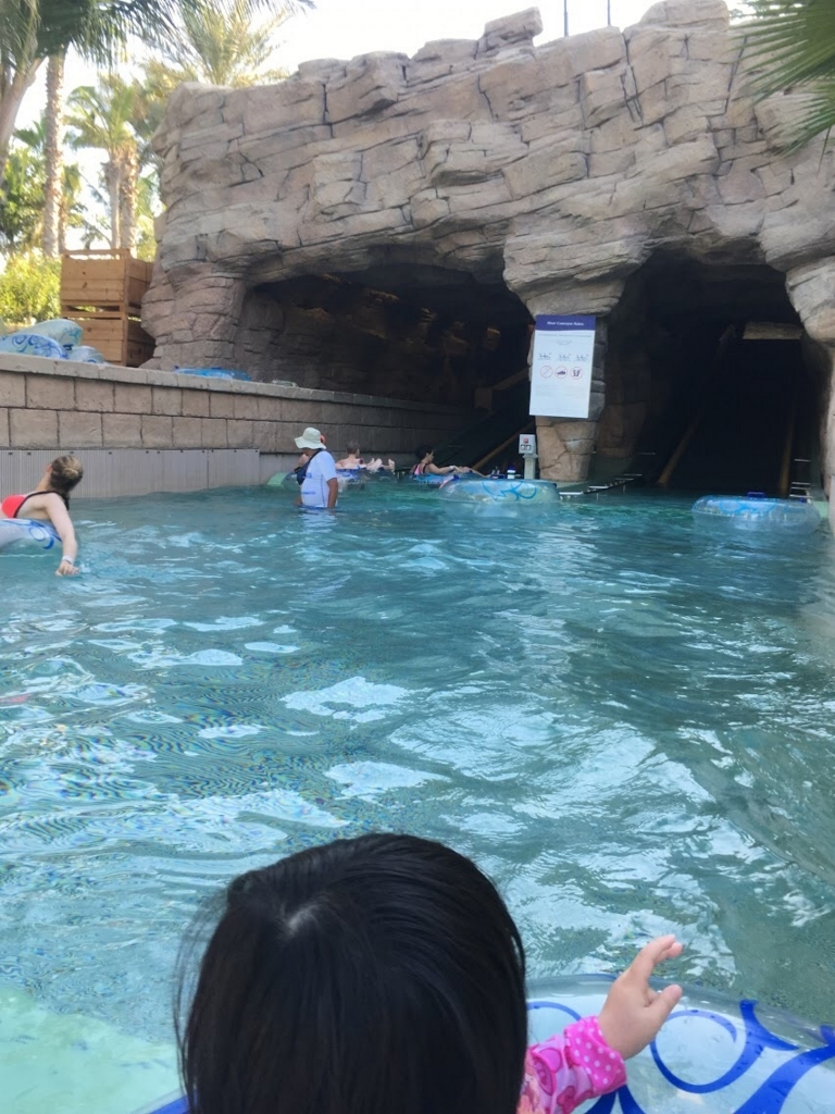 ウォーターパークにはとっても長い流れるプールがあります。